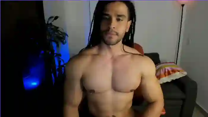 His birthday is November 15th 1997 making him 28 years old, and the average age of models on Flirt4Free is 25—making him one of the older models. His height is 180cm, and his weight is 86kg. He identifies his ethnicity as pacific islander. He has a hairy pubic hair, muscular body with black eyes and very long black hair.His body art includes piercings, tattoo(s).