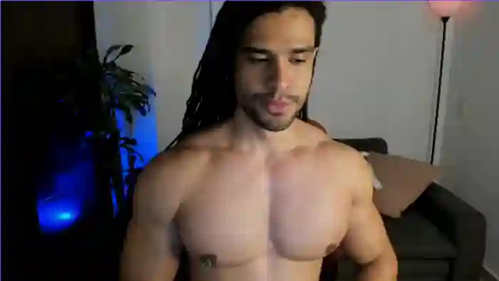 His birthday is November 15th 1997 making him 28 years old, and the average age of models on Flirt4Free is 25—making him one of the older models. His height is 180cm, and his weight is 86kg. He identifies his ethnicity as pacific islander. He has a hairy pubic hair, muscular body with black eyes and very long black hair.His body art includes piercings, tattoo(s).