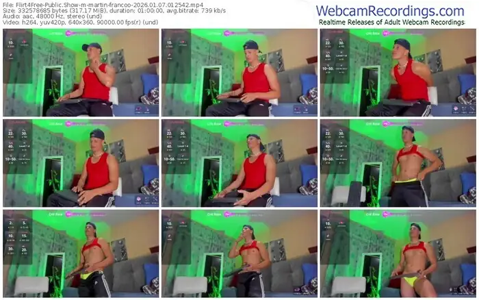 There are a total of 502 recordings (377 hours) of martin-francoo from Flirt4Free available below.