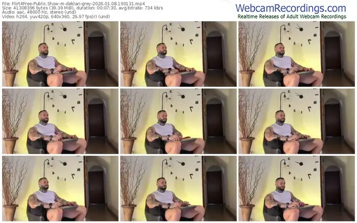 There are a total of 159 recordings (103 hours) of deklan-grey from Flirt4Free available below.