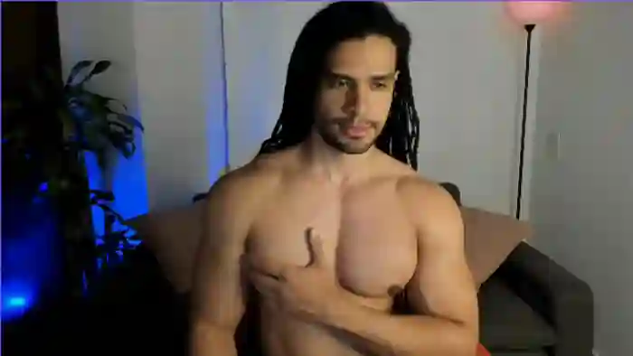 His birthday is November 15th 1997 making him 28 years old, and the average age of models on Flirt4Free is 25—making him one of the older models. His height is 180cm, and his weight is 86kg. He identifies his ethnicity as pacific islander. He has a hairy pubic hair, muscular body with black eyes and very long black hair.His body art includes piercings, tattoo(s).