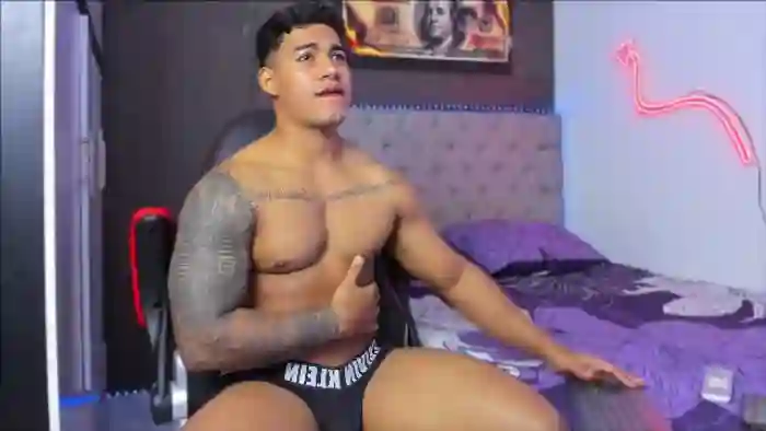 His birthday is May 23rd 2003 making him 22 years old, and the average age of models on Flirt4Free is 25—making him one of the younger models. His height is 175cm, and his weight is 80kg. He identifies his ethnicity as hispanic. He has a natural pubic hair, muscular body with brown eyes and short black hair.His body art includes piercings, tattoo(s).