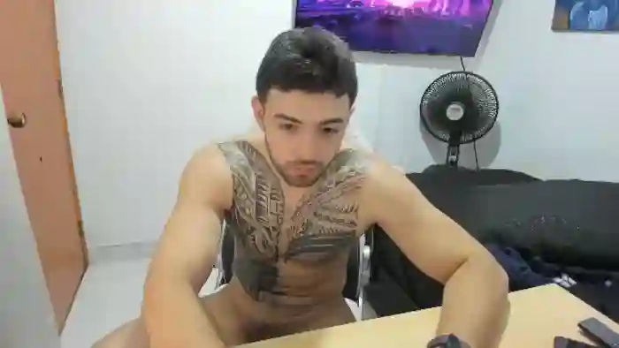 His birthday is July 25th 2001 making him 24 years old, and the average age of models on Flirt4Free is 25—making him one of the younger models. His height is 179cm, and his weight is 90kg. He identifies his ethnicity as hispanic. He has a trimmed pubic hair, athletic body with brown eyes and short black hair.His body art includes tattoo(s).