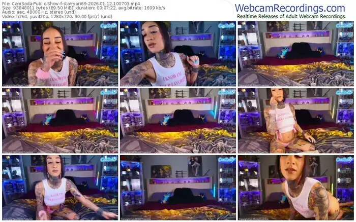 There are a total of 2,466 recordings (1,601 hours) of starryari69 from CamSoda available below.