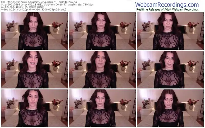 There are a total of 419 recordings (141 hours) of BlueStocking from MyFreeCams available below.