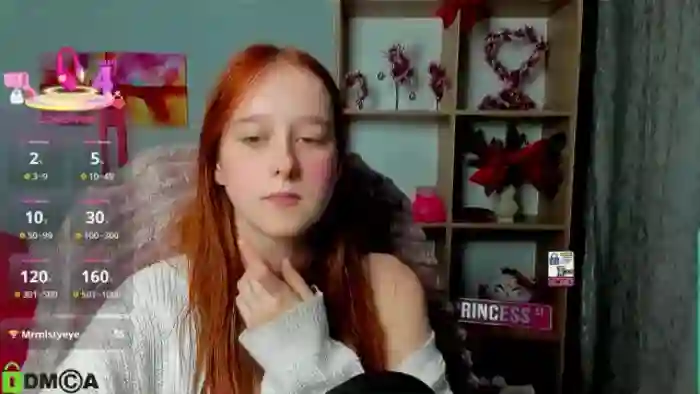 Her birthday is April 17th 2006 making her 19 years old, and the average age of models on MyFreeCams is 27—making her one of the younger models. Her height is 174 inches, and her weight is 55 pounds. She identifies her ethnicity as middle eastern. She has a slim/petite body with green eyes and red hair.