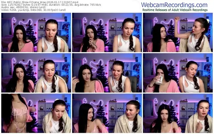 There are a total of 374 recordings (187 hours) of Diana_Wow from MyFreeCams available below.