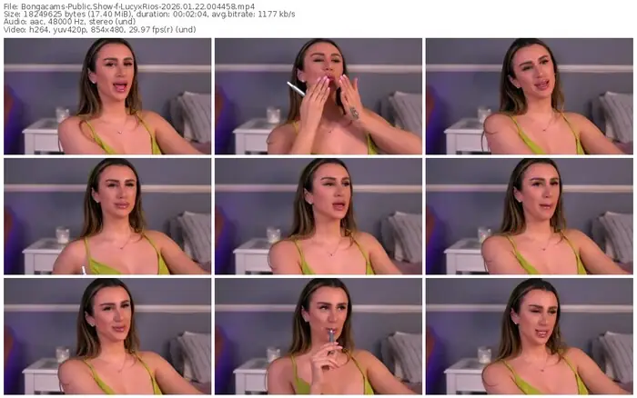 There are a total of 221 recordings (107 hours) of LucyxRios from Bongacams, MFC, Stripchat, and Chaturbate available below.