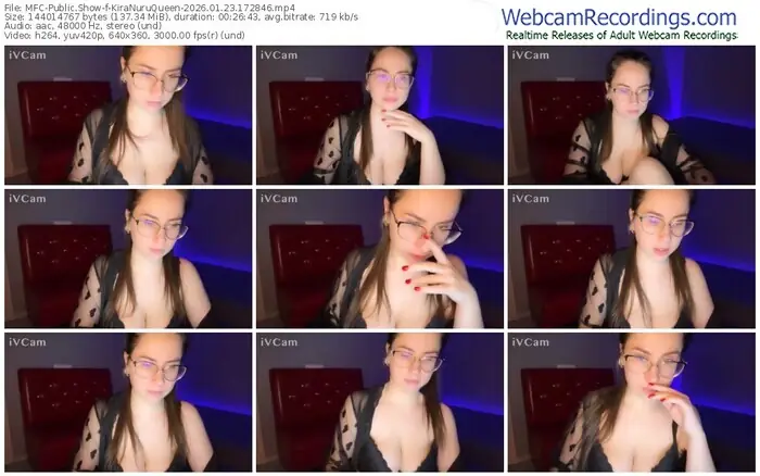 There are a total of 12 recordings (6 hours) of KiraNuruQueen from MyFreeCams available below.
