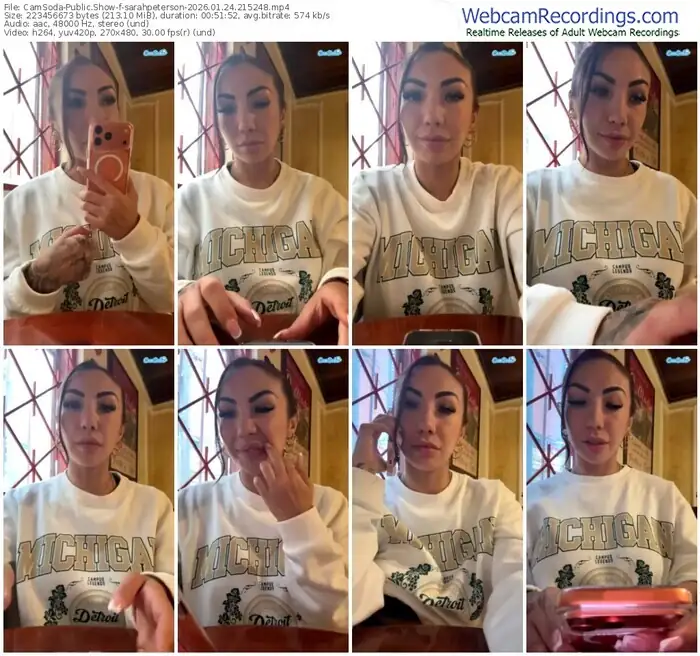 There are a total of 2,030 recordings (1,346 hours) of sarahpeterson from CamSoda available below.