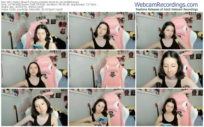 There are a total of 7,662 recordings (4,360 hours) of Cherrycute666 from MyFreeCams available below.