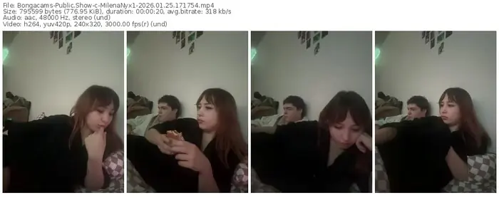 There are a total of 12 recordings (4 hours) of MilenaNyx1 from Bongacams available below.