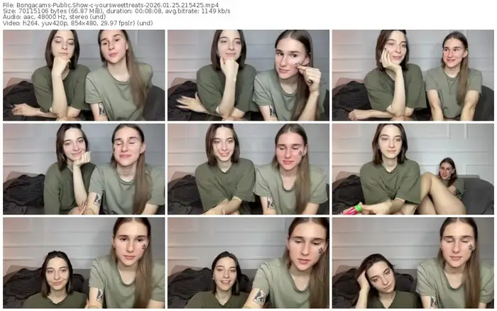 There are a total of 1,071 recordings (412 hours) of yoursweettreats from Bongacams available below.