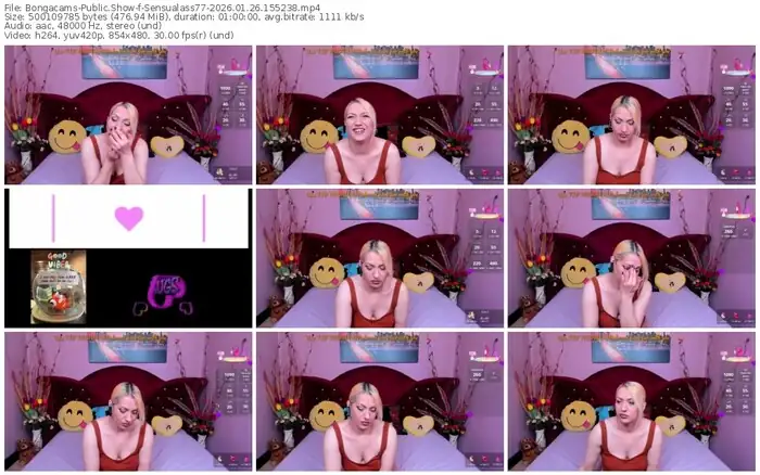 There are a total of 1,114 recordings (625 hours) of Sensualass77 from Bongacams available below.