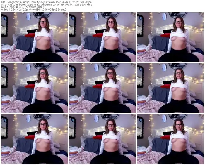 There are a total of 2 recordings (4 minutes) of SexyLittleWhisper from Bongacams and Streamate available below.