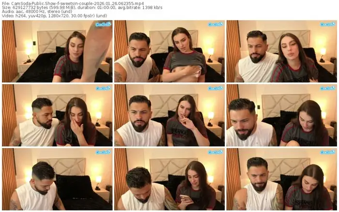 There are a total of 5 recordings (4 hours) of sweetsin-couple from CamSoda and Bongacams available below.