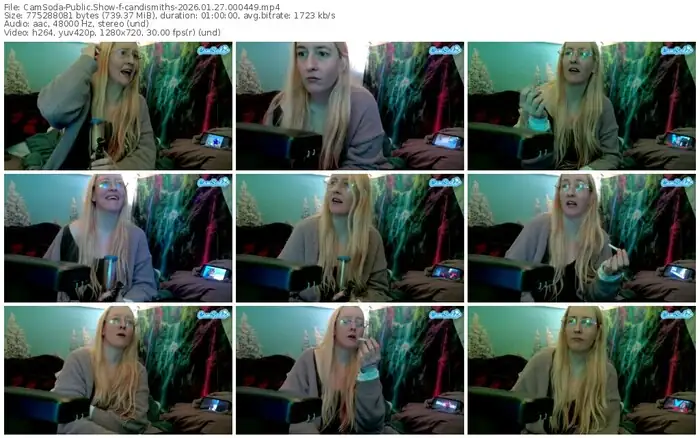 There are a total of 73 recordings (64 hours) of candismiths from CamSoda, MFC and Chaturbate available below.