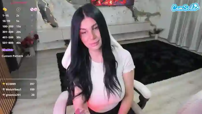 She is 34 years old, and the average age of models on CamSoda is 25—making her one of the older models. She has a curvy body with big tits body with black hair.