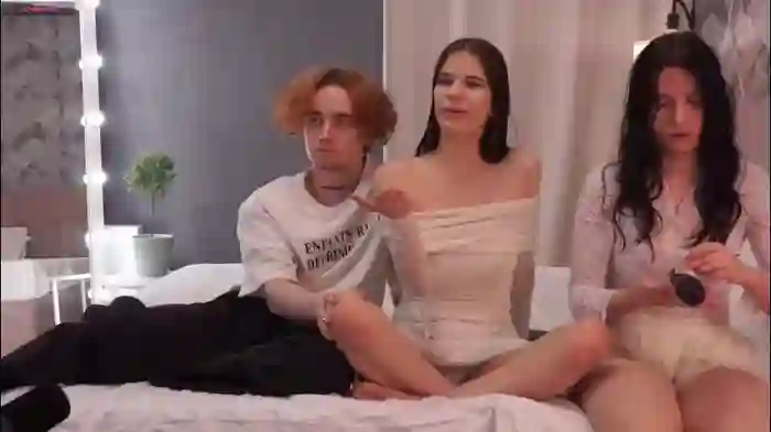 GOAL: Threesome kiss and body caresses [554 tokens remaining] Hello, my name is Stacy,Today my friend Amelia and her boyfriend Kai are with me #18 #young #bigboobs #cum #natural