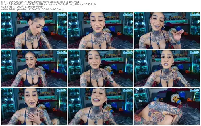 There are a total of 2,466 recordings (1,601 hours) of starryari69 from CamSoda available below.
