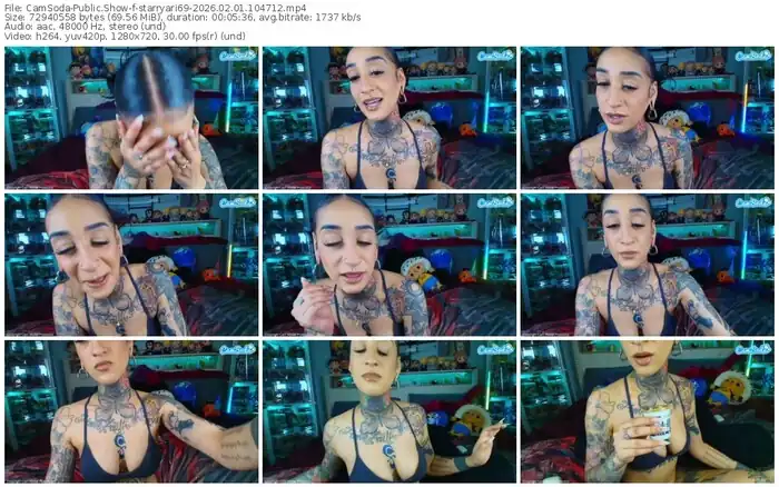There are a total of 2,466 recordings (1,601 hours) of starryari69 from CamSoda available below.