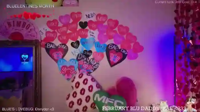 BLUELENTINES MONTH! - put a heart up on mi wall 222 - black 333 - blue 444 - LOVEBUG KING 777 - spanks 3 99 - friend/PM 125 - 1012 til BJ show <3