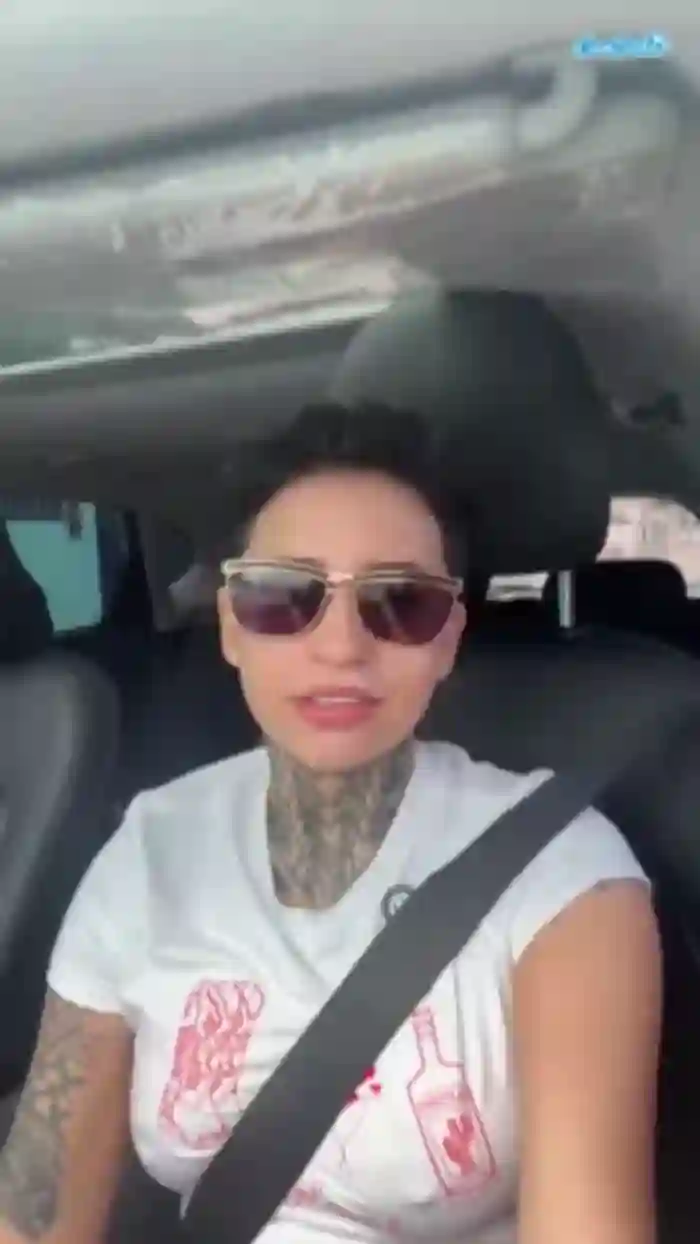 She has a curvy body with big tits body with gray eyes and neon hair.
