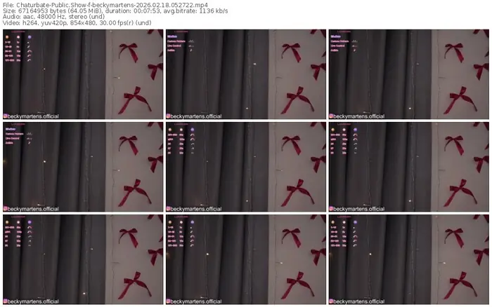 There are a total of 750 recordings (709 hours) of beckymartens from Chaturbate and Stripchat available below.