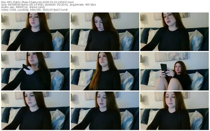 There are a total of 2,136 recordings (1,399 hours) of SamyraX from MyFreeCams available below.