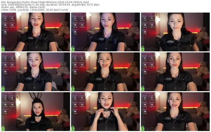There are a total of 143 recordings (96 hours) of KatrinMoreno from Bongacams available below.