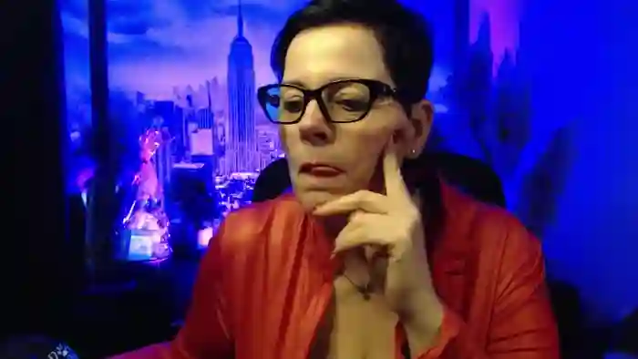 She is 54 years old, and the average age of models on Streamate is 30—making her one of the older models. Her height is 5'7, and her weight is 209 lbs. She identifies her ethnicity as white. She has a bbw body with d cup breasts and hairy pubic hair body with blue eyes.Her body art includes tattoos.