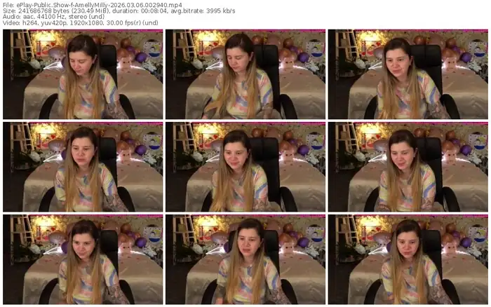 There are a total of 226 recordings (173 hours) of AmellyMilly from ePlay and Stripchat available below.