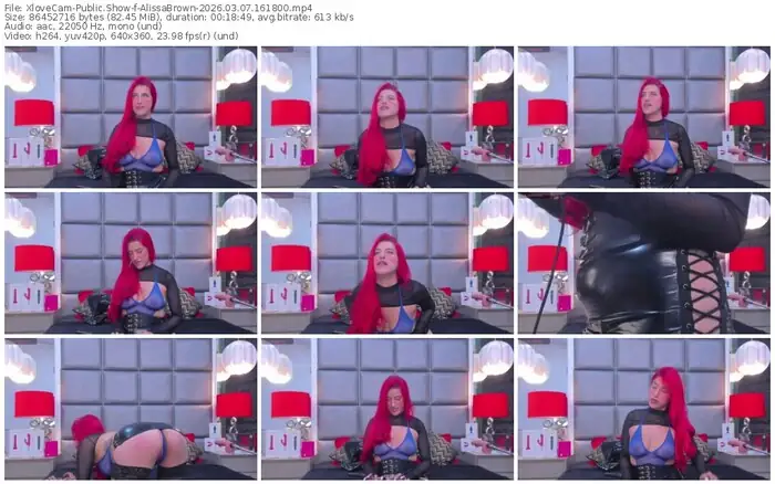 There are a total of 2,289 recordings (591 hours) of AlissaBrown from XloveCam available below.