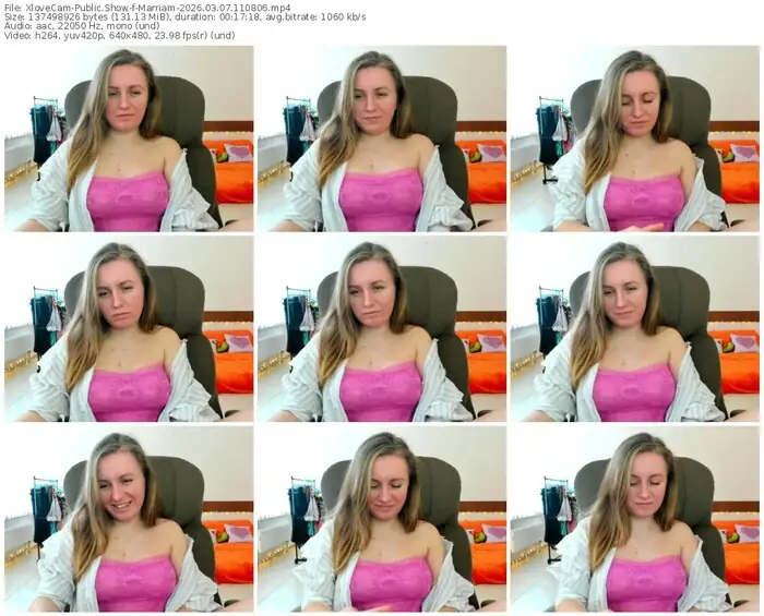 There are a total of 32 recordings (10 hours) of Marriam from XloveCam available below.