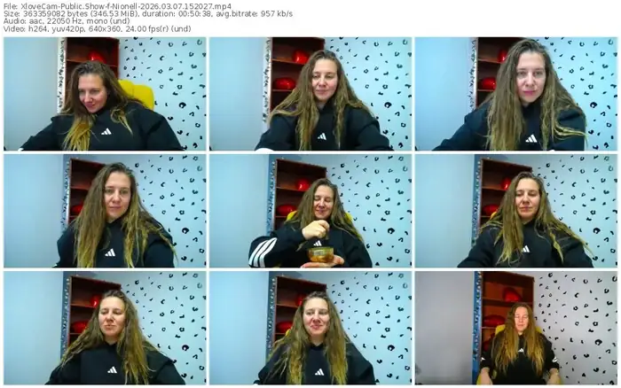There are a total of 54 recordings (28 hours) of Nionell from XloveCam available below.