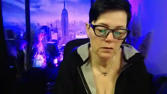 She is 54 years old, and the average age of models on Streamate is 30—making her one of the older models. Her height is 5'7, and her weight is 209 lbs. She identifies her ethnicity as white. She has a bbw body with d cup breasts and hairy pubic hair body with blue eyes.Her body art includes tattoos.