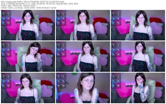There are a total of 38 recordings (19 hours) of TinaMelt from Dreamcam, Stripchat and CamSoda available below.