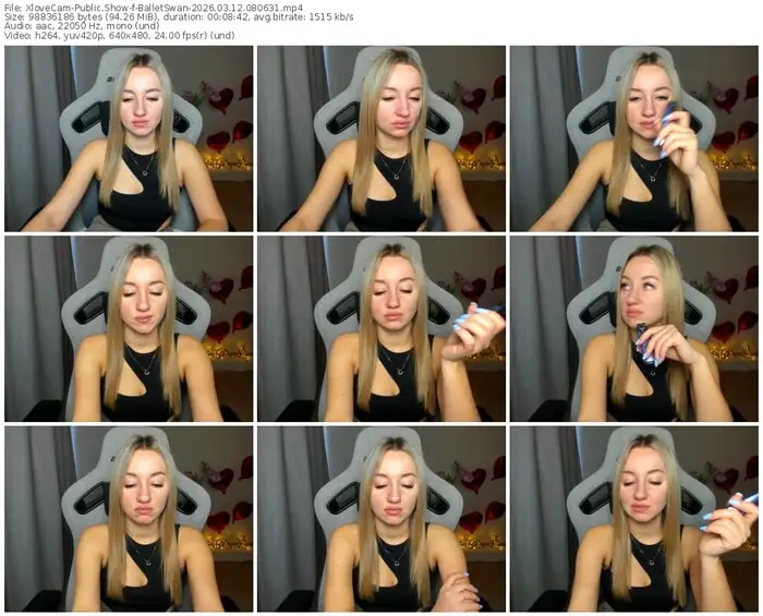 There are a total of 358 recordings (121 hours) of BalletSwan from XloveCam available below.