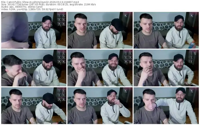There are a total of 275 recordings (170 hours) of johnnylove22 from Cam4 available below.