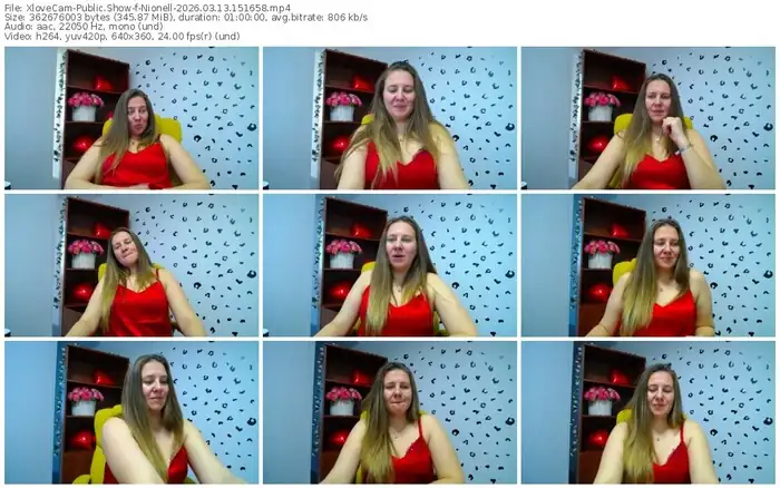 There are a total of 54 recordings (28 hours) of Nionell from XloveCam available below.