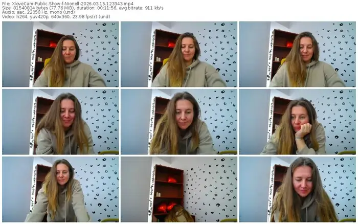There are a total of 54 recordings (28 hours) of Nionell from XloveCam available below.