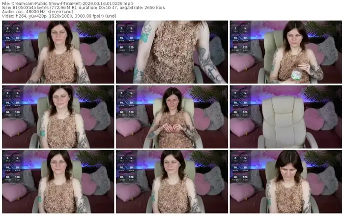 There are a total of 38 recordings (19 hours) of TinaMelt from Dreamcam, Stripchat and CamSoda available below.