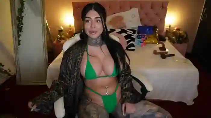 She is 28 years old, and the average age of models on Streamate is 30—making her one of the younger models. Her height is 5'7, and her weight is 140 lbs. She identifies her ethnicity as european. She has a curvaceous body with dd/e cup breasts and trimmed pubic hair body with brown eyes.Her body art includes tattoos,piercings.