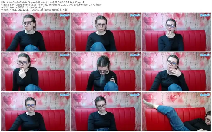 There are a total of 11 recordings (5 hours) of lilianashine from CamSoda available below.