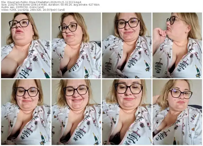 She is 26 years old, and the average age of models on XloveCam is 25—making her one of the older models. Her height is 165 cm - 65 in. She identifies her ethnicity as white. She has a plumper body with chestnut eyes and medium blonde hair.