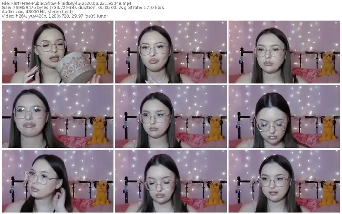 There are a total of 3,419 recordings (2,415 hours) of lindsey-lu from Flirt4Free available below.