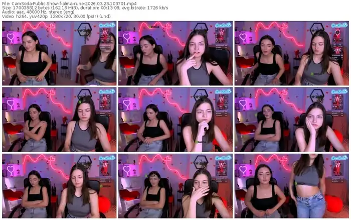 There are a total of 5 recordings (2 hours) of alma-rune from CamSoda available below.